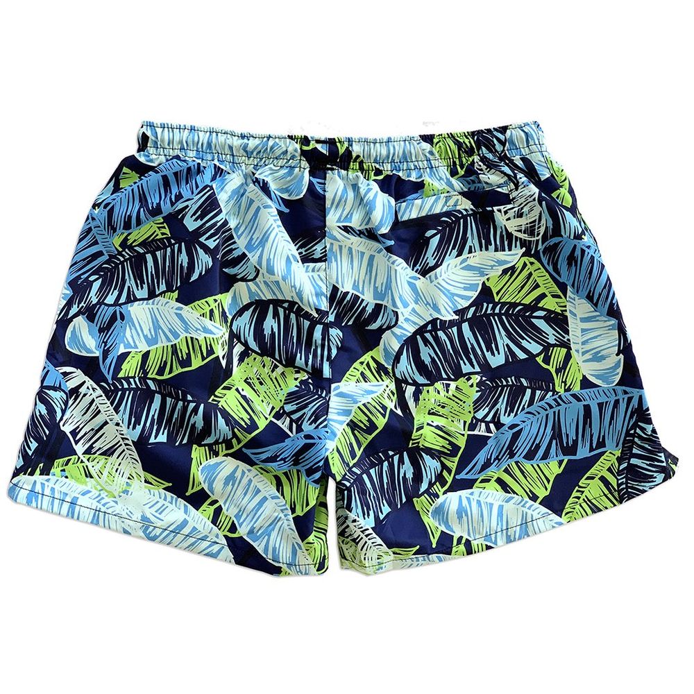 Colorful palm leaves and parrots inspired in “Pura Vida” land, make these quick-drying swim trunks immediately into chill mode.